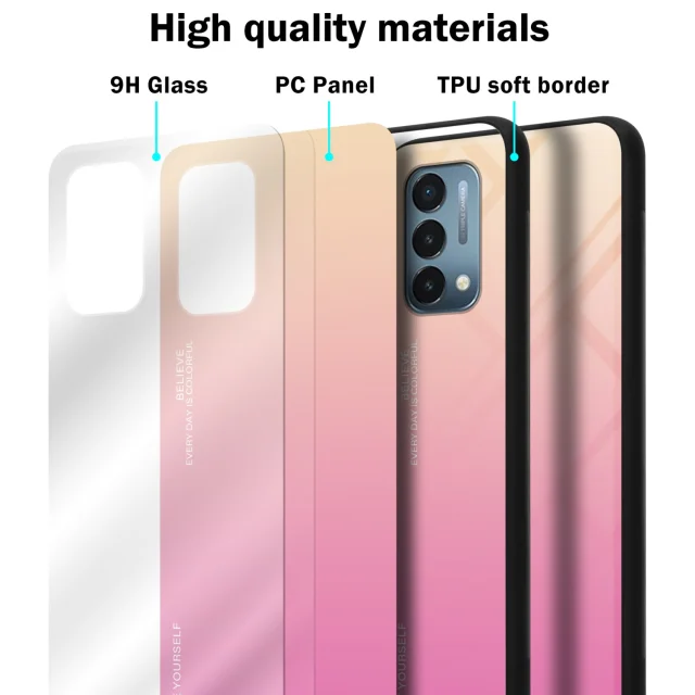CADORABO Ohišje, združljiv z OnePlus v rumeni - roza - dvobarvni zaščitni pokrov iz silikona TPU in hrbta iz kaljenega stekla