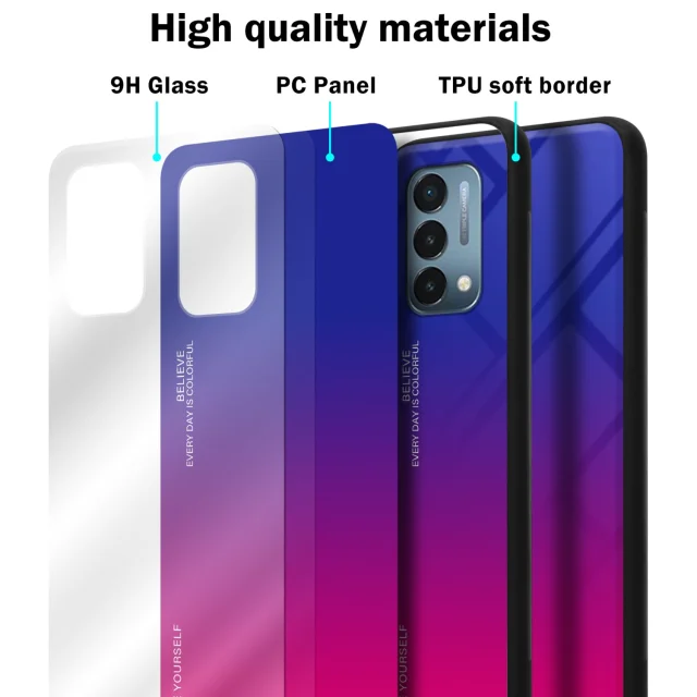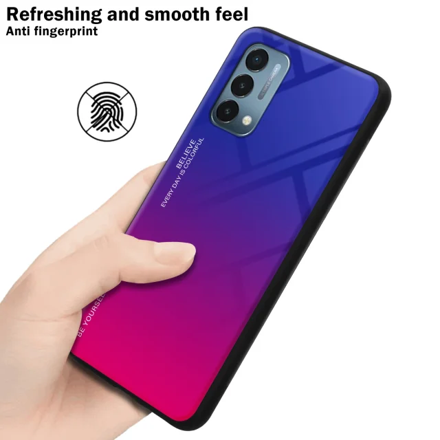 CADORABO Ohišje, združljiv z OnePlus v vijolični - rdeči - dvobarvni zaščitni pokrov iz silikona TPU in hrbta iz kaljenega stekla
