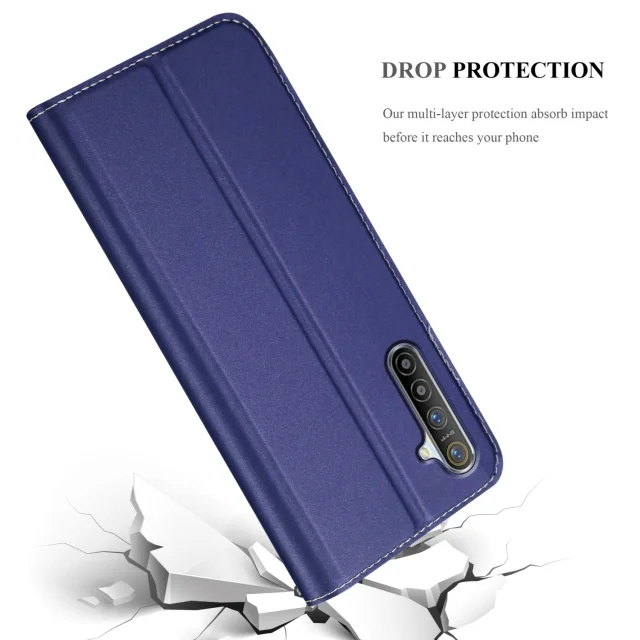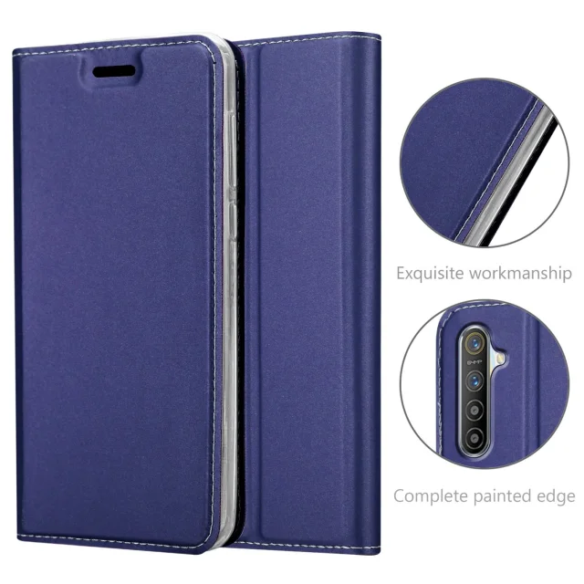 CADORABO Ohišje, združljiv z Realme v elegantno temno modri - zaščitni pokrov z magnetnim zapiranjem, stoječo funkcijo in režo za kartico