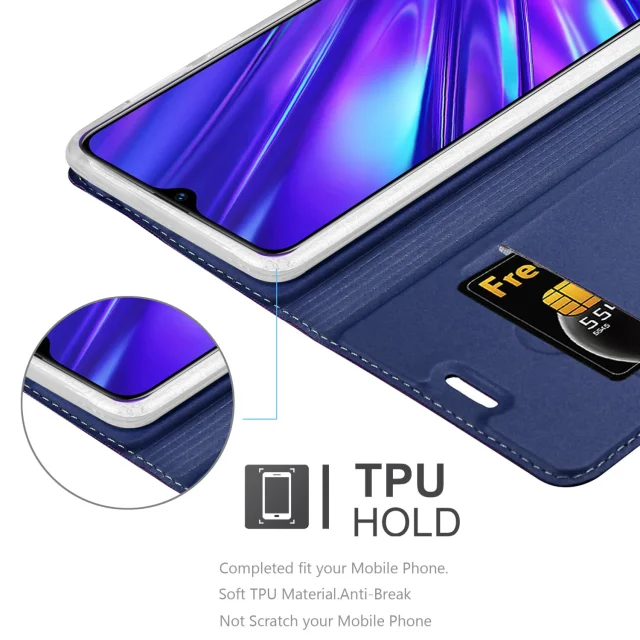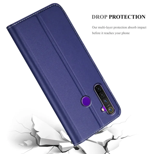 CADORABO Ohišje, združljiv z Realme v elegantno temno modri - zaščitni pokrov z magnetnim zapiranjem, stoječo funkcijo in režo za kartico