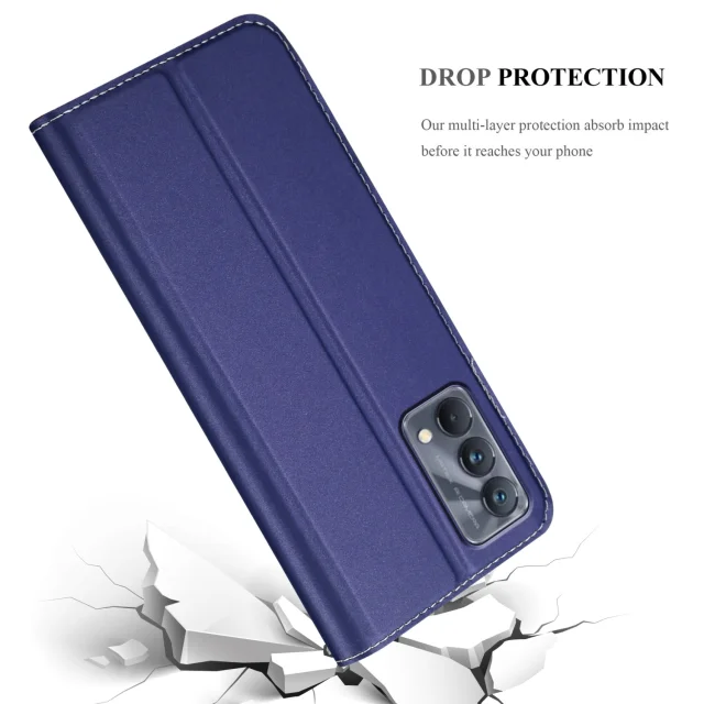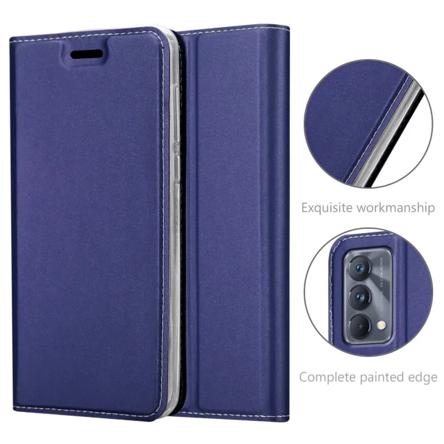 CADORABO Ohišje, združljiv z Realme v elegantno temno modri - zaščitni pokrov z magnetnim zapiranjem, stoječo funkcijo in režo za kartico