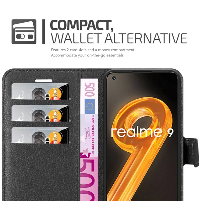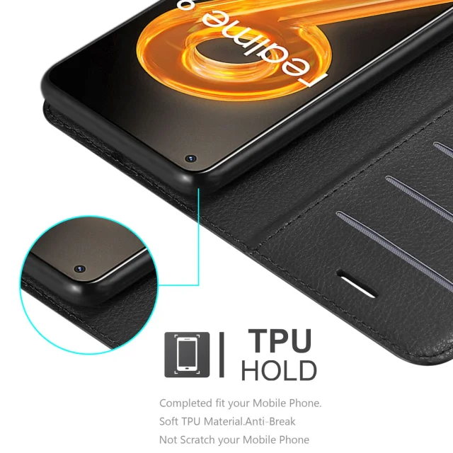 CADORABO Ohišje, združljiv z REALME v oksidnem črnem - zaščitnem pokrovu z magnetnim zapiranjem, stoječo funkcijo in režo za kartico