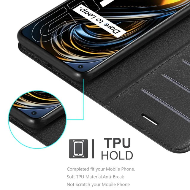 CADORABO Ohišje, združljiv z REALME v oksidnem črnem - zaščitnem pokrovu z magnetnim zapiranjem, stoječo funkcijo in režo za kartico