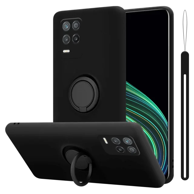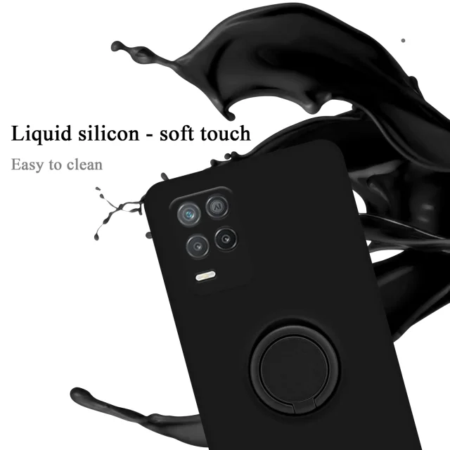 CADORABO Ohišje, združljiv z Realme v tekoči črni barvi - zaščitni pokrov iz fleksibilnega silikona TPU z obročem