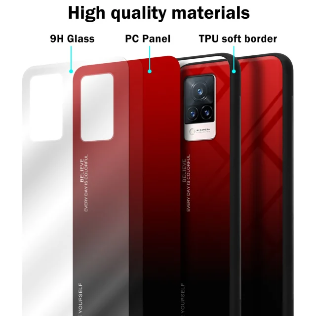 CADORABO Ohišje, združljiv z vivo v rdeči barvi - črni - dvobarvni zaščitni pokrov iz silikona TPU in hrbta iz kaljenega stekla