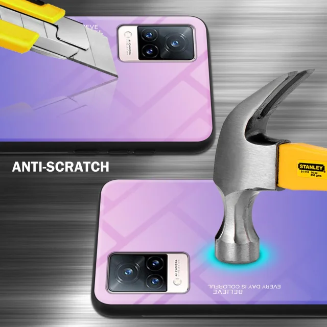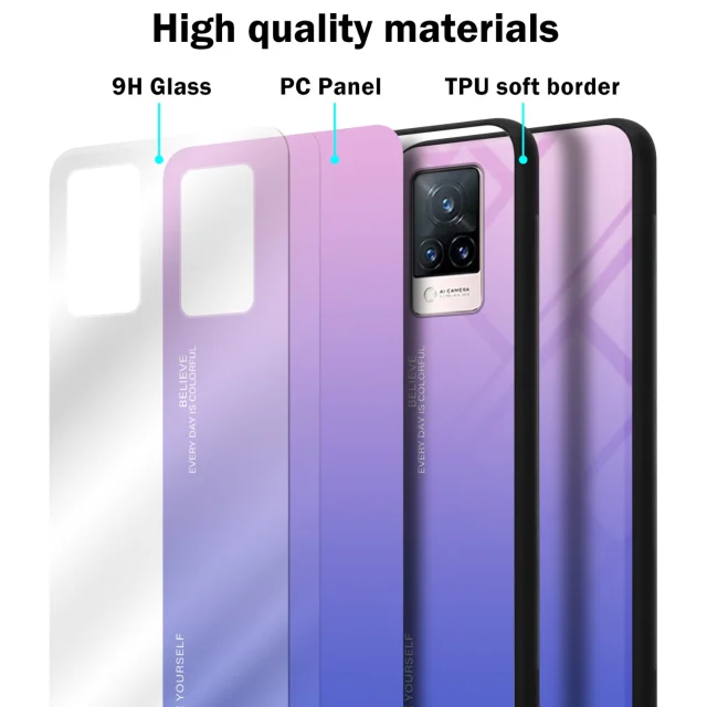 CADORABO Ohišje, združljiv z vivo v roza - modri - dvobarvni zaščitni pokrov iz silikona TPU in hrbta iz kaljenega stekla