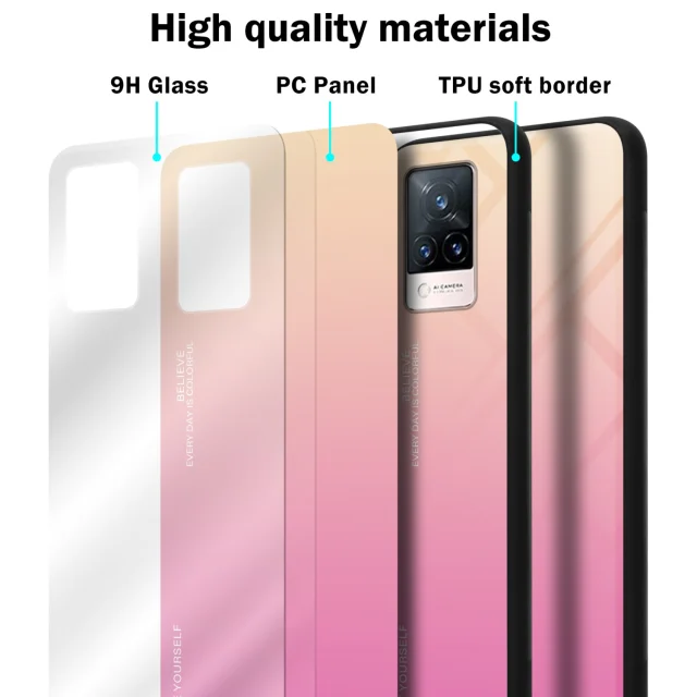 CADORABO Ohišje, združljiv z vivo v rumeni - roza - dvobarvni zaščitni pokrov iz silikona TPU in hrbta iz kaljenega stekla