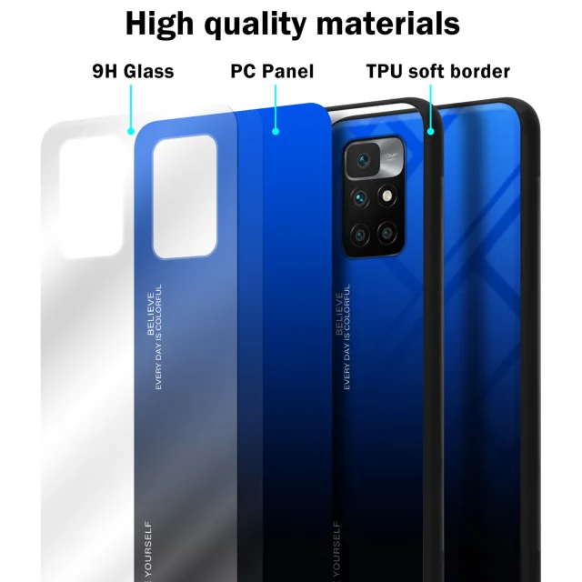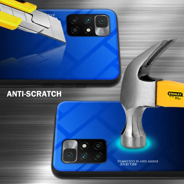CADORABO Ohišje, združljiv z Xiaomi v modri - črni - dvobarvni zaščitni pokrov iz silikona TPU in hrbta iz kaljenega stekla