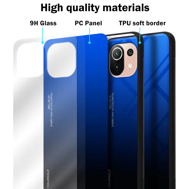 CADORABO Ohišje, združljiv z Xiaomi v modri - črni - dvobarvni zaščitni pokrov iz silikona TPU in hrbta iz kaljenega stekla