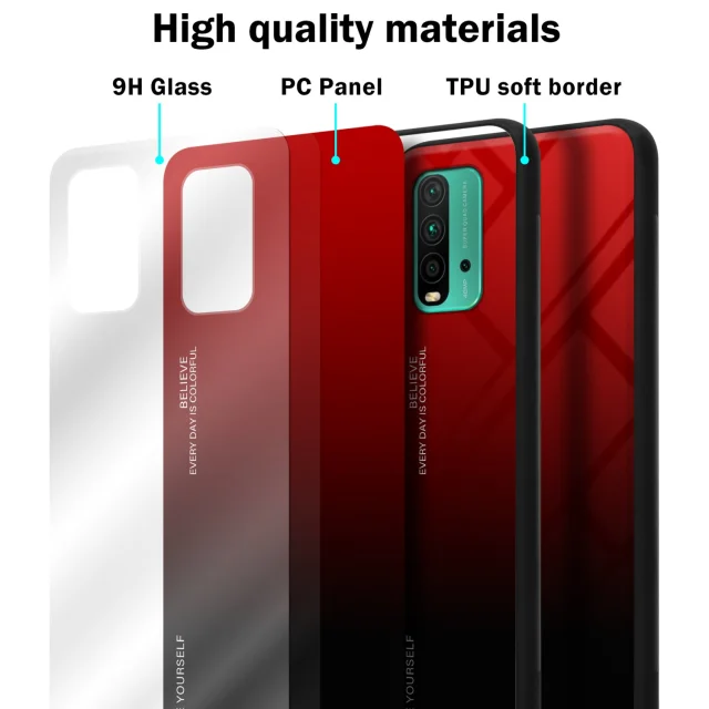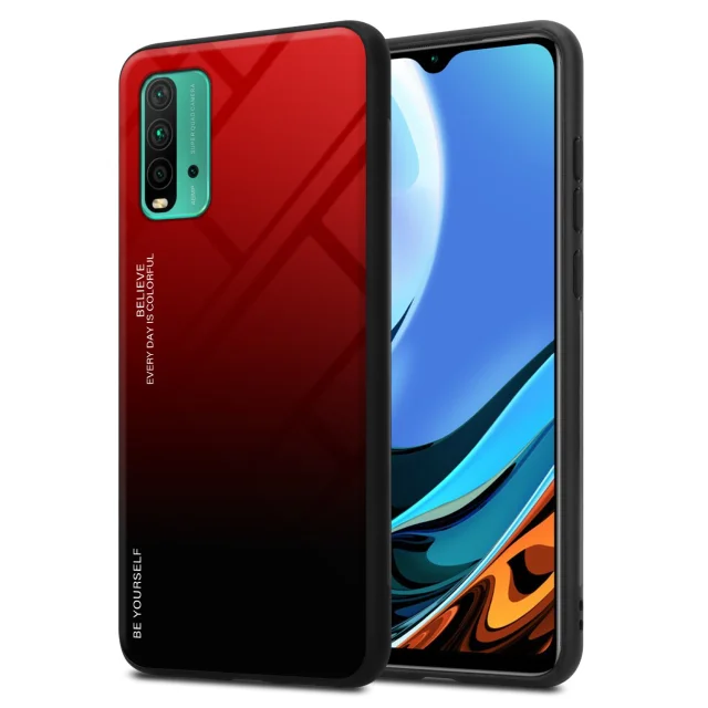 CADORABO Ohišje, združljiv z Xiaomi v rdeči barvi - črni - dvobarvni zaščitni pokrov iz silikona TPU in hrbta iz kaljenega stekla