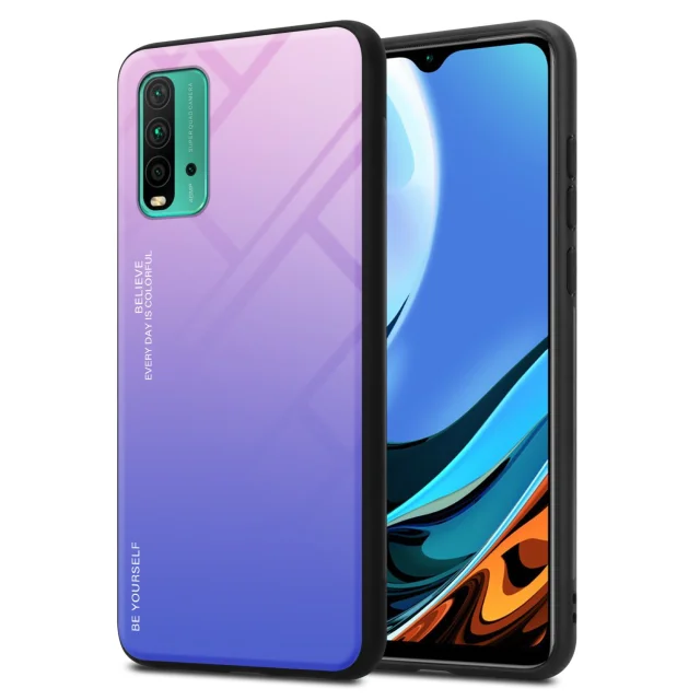 CADORABO Ohišje, združljiv z Xiaomi v roza - modri - dvobarvni zaščitni pokrov iz silikona TPU in hrbta iz kaljenega stekla