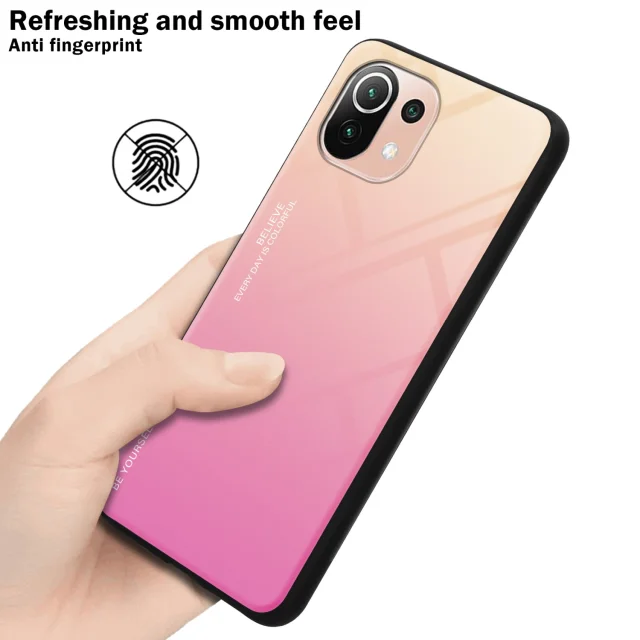 CADORABO Ohišje, združljiv z Xiaomi v rumeni - roza - dvobarvni zaščitni pokrov iz silikona TPU in hrbta iz kaljenega stekla