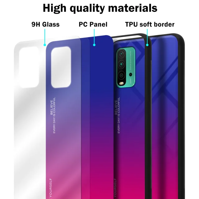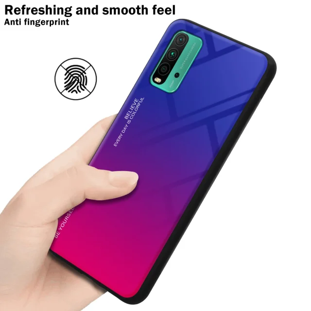 CADORABO Ohišje, združljiv z Xiaomi v vijolični - rdeči - dvobarvni zaščitni pokrov, narejen iz silikona TPU in hrbta iz kaljenega stekla