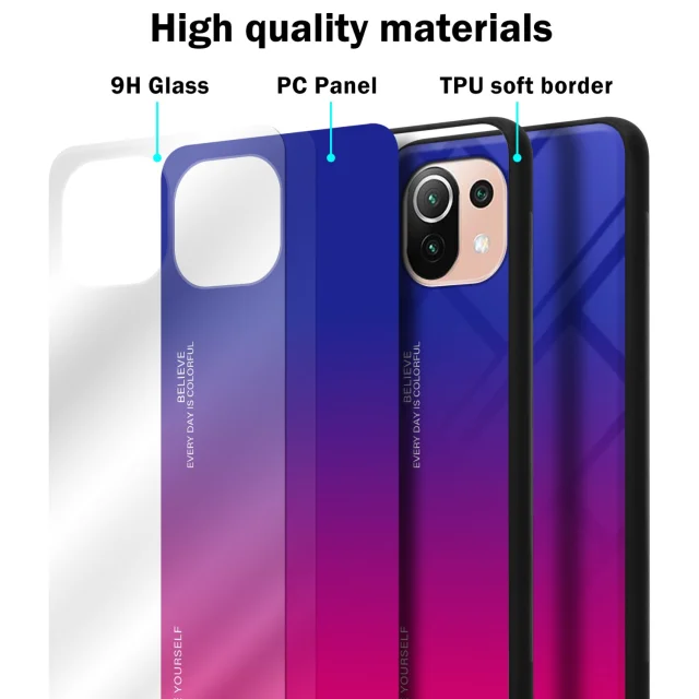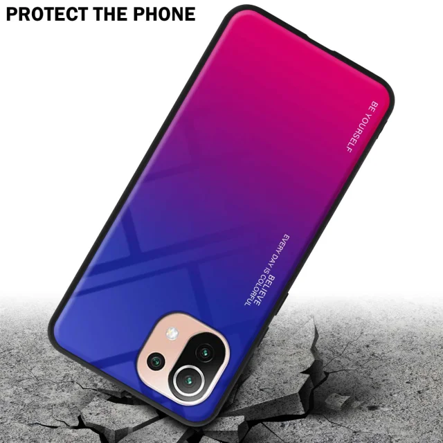 CADORABO Ohišje, združljiv z Xiaomi v vijolični - rdeči - dvobarvni zaščitni pokrov, narejen iz silikona TPU in hrbta iz kaljenega stekla