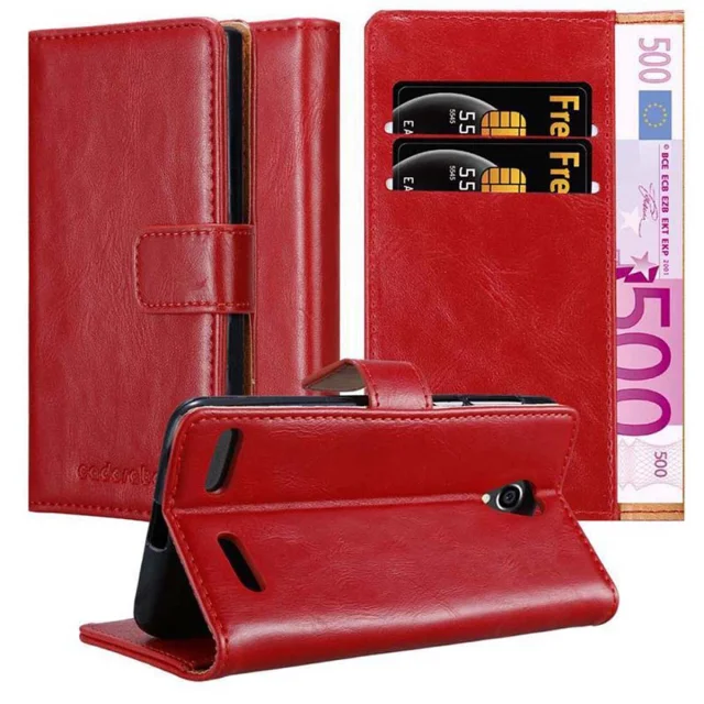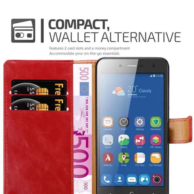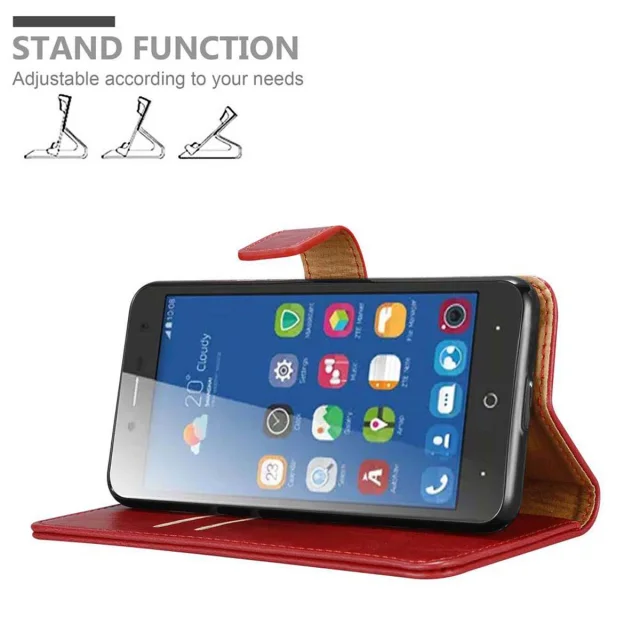 CADORABO Ohišje, združljiv z ZTE v rdeči barvi - zaščitni pokrov z magnetnim zapiranjem, stoječo funkcijo in režo za kartico