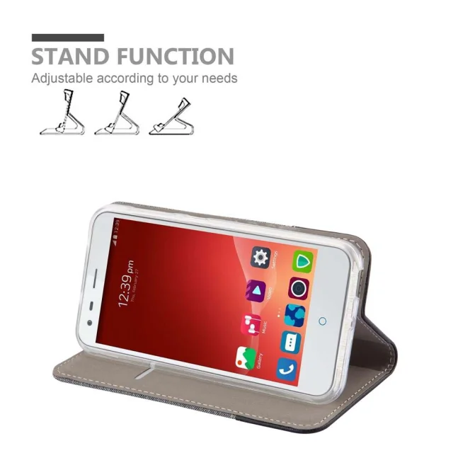 CADORABO Ohišje, združljiv z ZTE v sivi črni barvi - zaščitni pokrov z magnetnim zapiranjem, stoječo funkcijo in režo za kartico