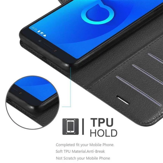 Cadorabo Ohišje, združljivo z Alcatel 3C v oksidna črna - Zaščitni ovitek z magnetnim zapiranjem, stoječo funkcijo in režo za kartice