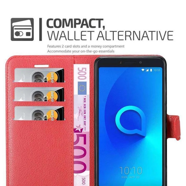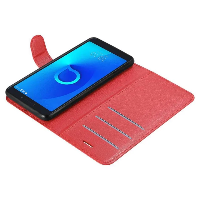 Cadorabo Ohišje, združljivo z Alcatel 3C v rdeče sladkorno jabolko - Zaščitni ovitek z magnetnim zapiranjem, stoječo funkcijo in režo za kartice