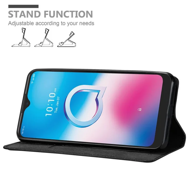 Cadorabo Ohišje, združljivo z Alcatel 3L 2020 v nočna črna - Zaščitni ovitek z magnetnim zapiranjem, stoječo funkcijo in režo za kartice