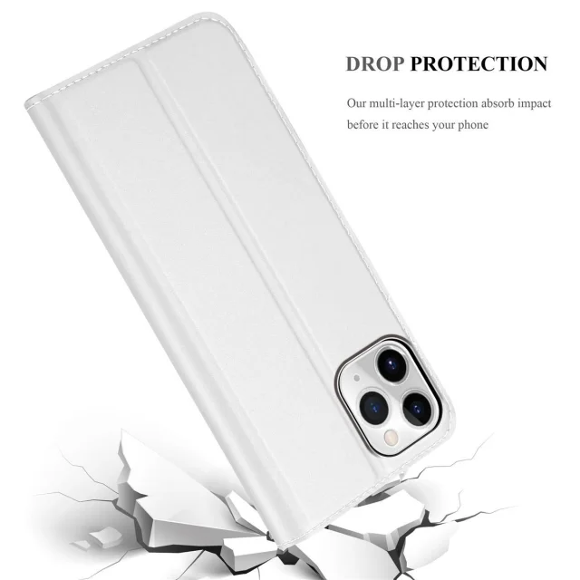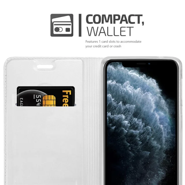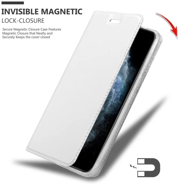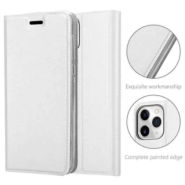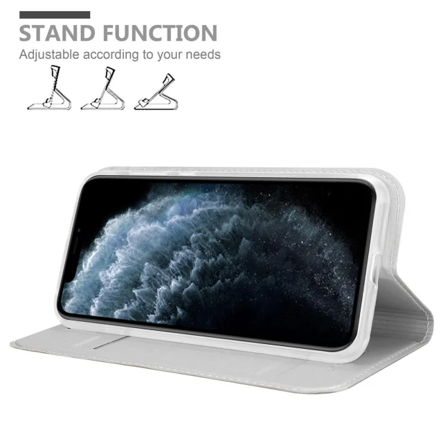 Cadorabo Ohišje, združljivo z Apple iPhone 11 PRO MAX v klasično srebrno - Zaščitni ovitek z magnetnim zapiranjem, stoječo funkcijo in režo za kartice