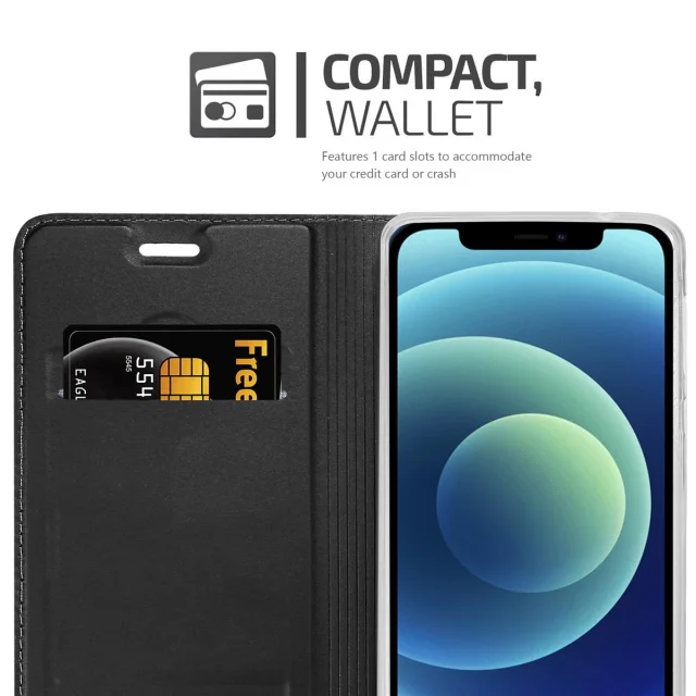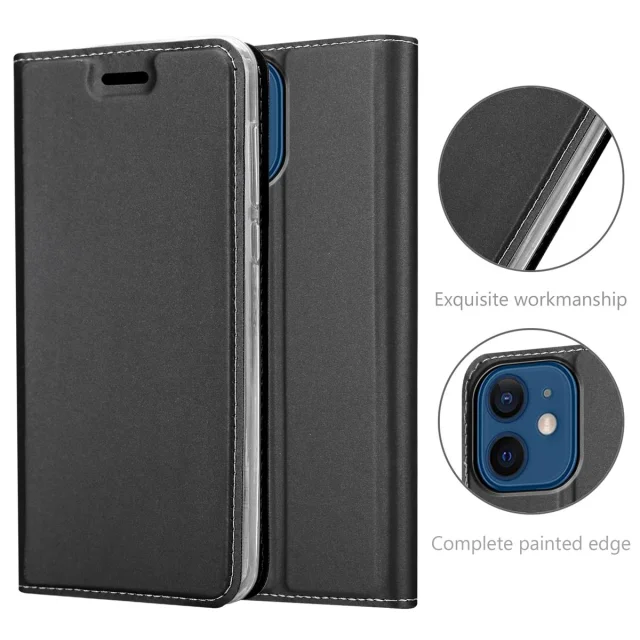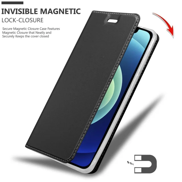Cadorabo Ohišje, združljivo z Apple iPhone 12 MINI v klasična črna - Zaščitni ovitek z magnetnim zapiranjem, stoječo funkcijo in režo za kartice