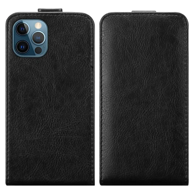 Cadorabo Ohišje, združljivo z Apple iPhone 12 PRO MAX v nočna črna - Zaščitni ovitek v obliki flipa z magnetnim zapiranjem