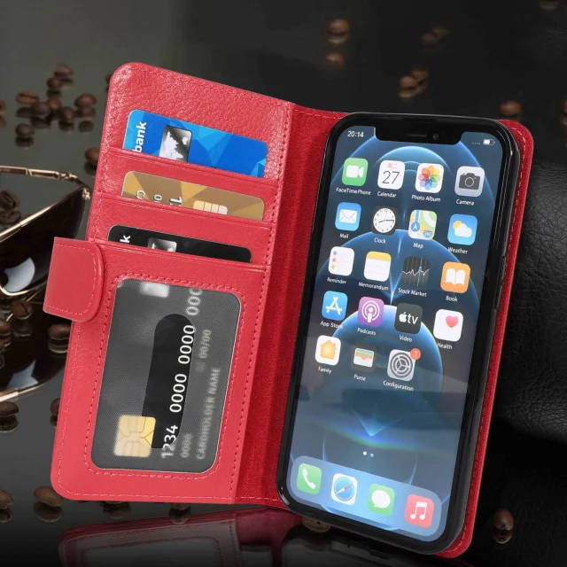 Cadorabo Ohišje, združljivo z Apple iPhone 13 MINI v inferno red - Zaščitni ovitek z magnetnim zapiranjem in 3 režami za kartice