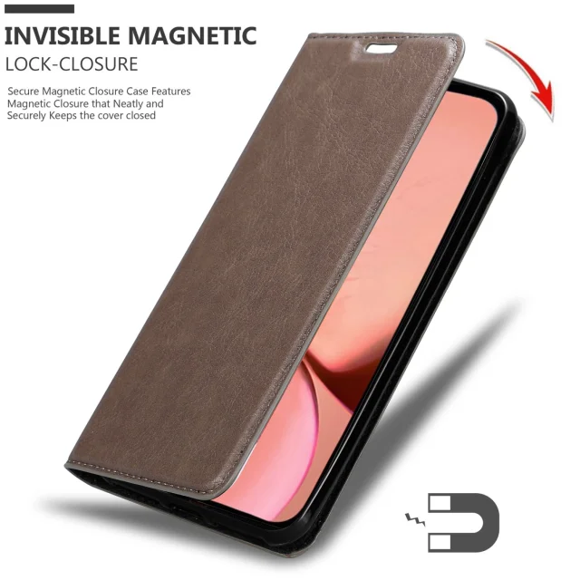 Cadorabo Ohišje, združljivo z Apple iPhone 13 MINI v kavovinsko rdeča - Zaščitni ovitek z magnetnim zapiranjem, stoječo funkcijo in režo za kartice