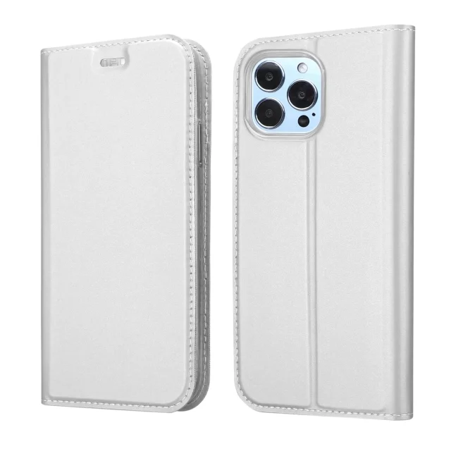 Cadorabo Ohišje, združljivo z Apple iPhone 13 PRO v klasično srebrno - Zaščitni ovitek z magnetnim zapiranjem, stoječo funkcijo in režo za kartice