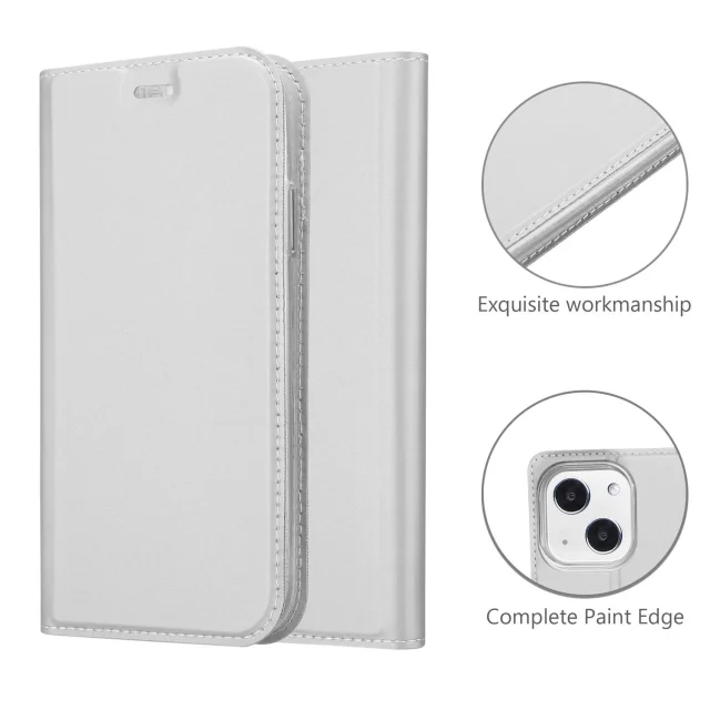 Cadorabo Ohišje, združljivo z Apple iPhone 13 v klasično srebrno - Zaščitni ovitek z magnetnim zapiranjem, stoječo funkcijo in režo za kartice