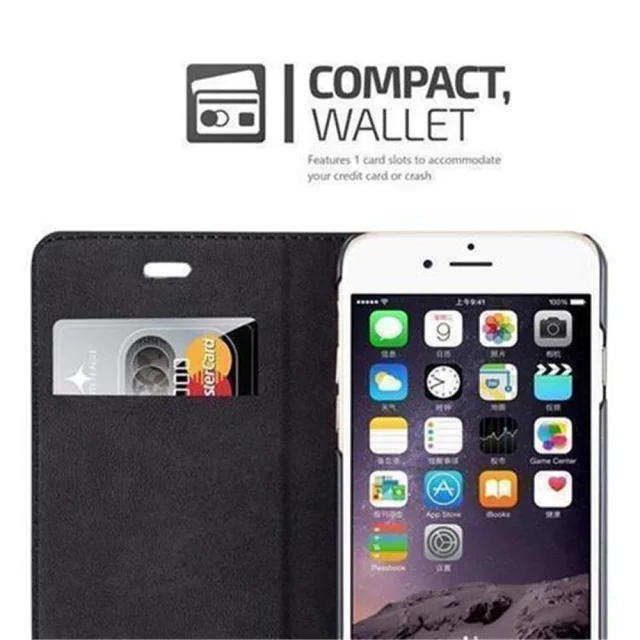 Cadorabo Ohišje, združljivo z Apple iPhone 6 / 6S v nočna črna - Zaščitni ovitek z magnetnim zapiranjem, stoječo funkcijo in režo za kartice