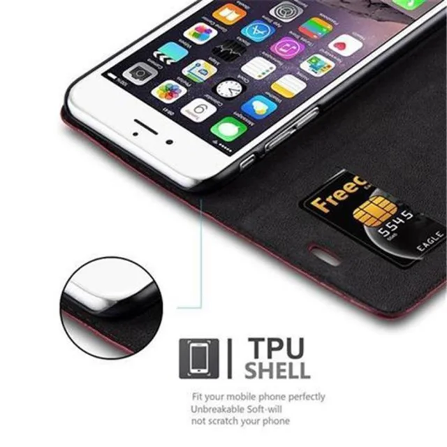 Cadorabo Ohišje, združljivo z Apple iPhone 6 / 6S v rdeče jabolko - Zaščitni ovitek z magnetnim zapiranjem, stoječo funkcijo in režo za kartice