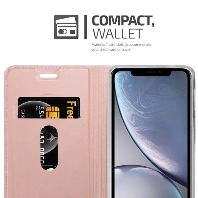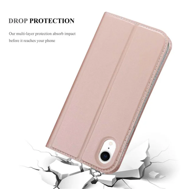 Cadorabo Ohišje, združljivo z Apple iPhone XR v klasična rožnata zlata - Zaščitni ovitek z magnetnim zapiranjem, stoječo funkcijo in režo za kartice