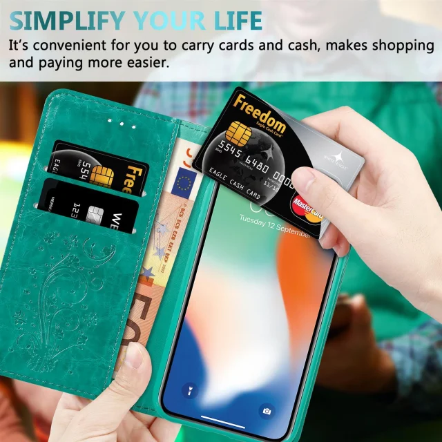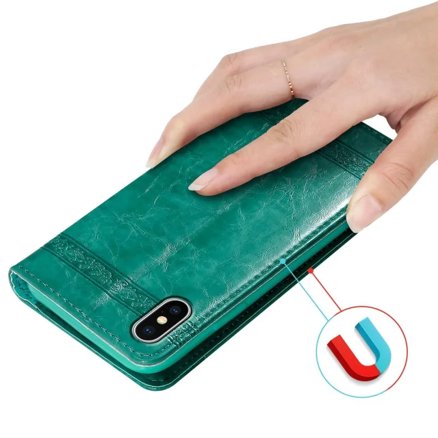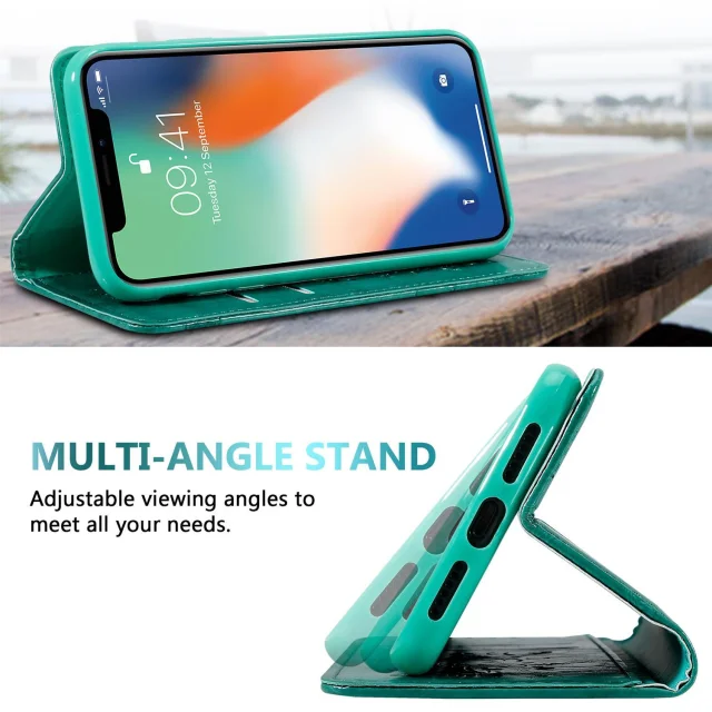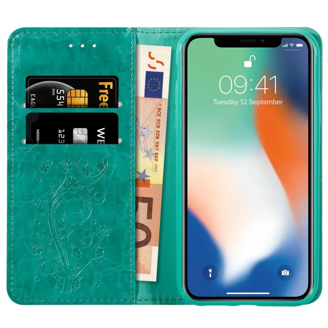Cadorabo Ohišje, združljivo z Apple iPhone XS MAX v turkizna z okraski - Zaščitni ovitek z magnetnim zapiranjem, funkcijo stojala in režo za kartice