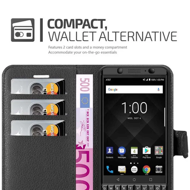Cadorabo Ohišje, združljivo z Blackberry KEYONE v oksidna črna - Zaščitni ovitek z magnetnim zapiranjem, stoječo funkcijo in režo za kartice