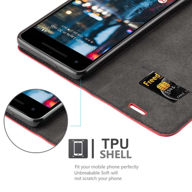 Cadorabo Ohišje, združljivo z Google PIXEL 2 v rdeče jabolko - Zaščitni ovitek z magnetnim zapiranjem, stoječo funkcijo in režo za kartice