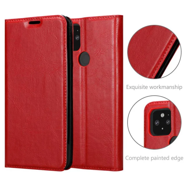 Cadorabo Ohišje, združljivo z Google PIXEL 5 v rdeče jabolko - Zaščitni ovitek z magnetnim zapiranjem, stoječo funkcijo in režo za kartice