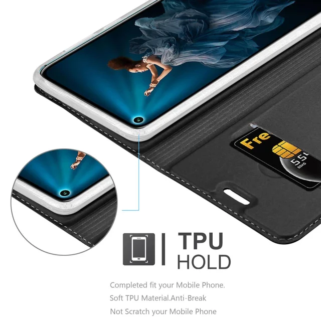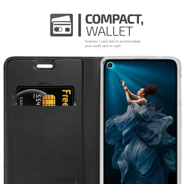 Cadorabo Ohišje, združljivo z Honor 20 PRO v klasična črna - Zaščitni ovitek z magnetnim zapiranjem, stoječo funkcijo in režo za kartice