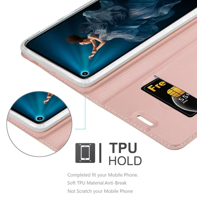 Cadorabo Ohišje, združljivo z Honor 20 PRO v klasična rožnata zlata - Zaščitni ovitek z magnetnim zapiranjem, stoječo funkcijo in režo za kartice