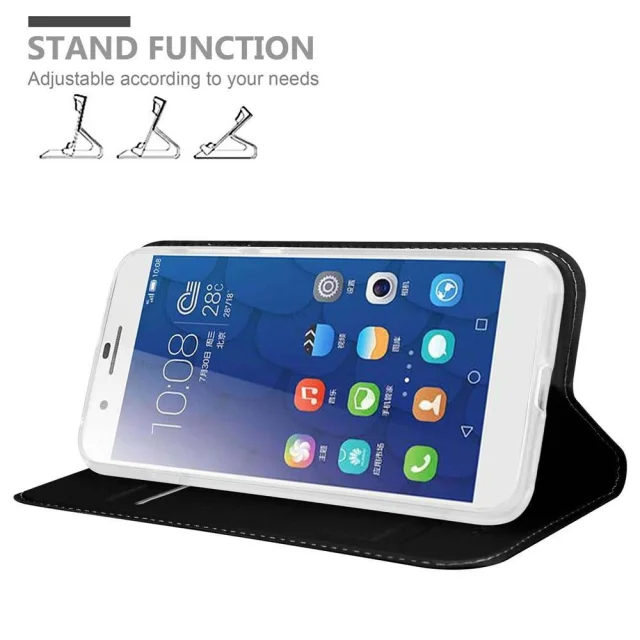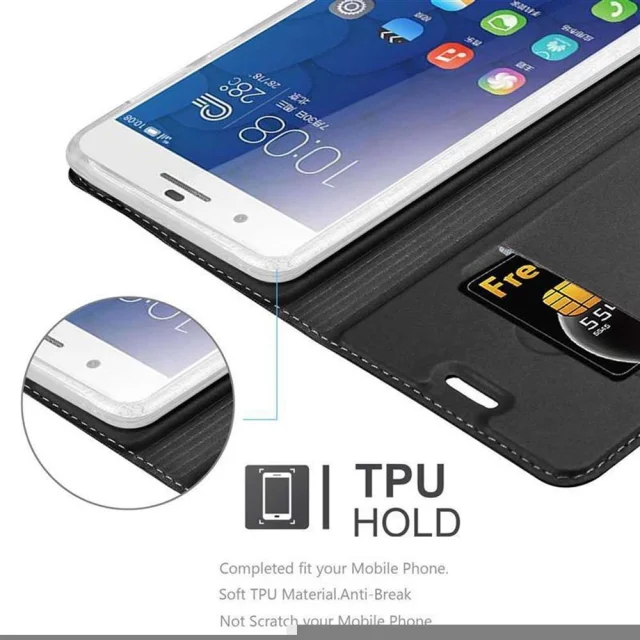 Cadorabo Ohišje, združljivo z Honor 6 PLUS v klasična črna - Zaščitni ovitek z magnetnim zapiranjem, stoječo funkcijo in režo za kartice