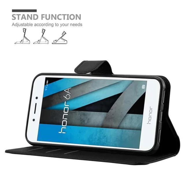 Cadorabo Ohišje, združljivo z Honor 6A v oksidna črna - Zaščitni ovitek z magnetnim zapiranjem, stoječo funkcijo in režo za kartice