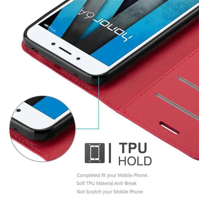 Cadorabo Ohišje, združljivo z Honor 6A v rdeče sladkorno jabolko - Zaščitni ovitek z magnetnim zapiranjem, stoječo funkcijo in režo za kartice