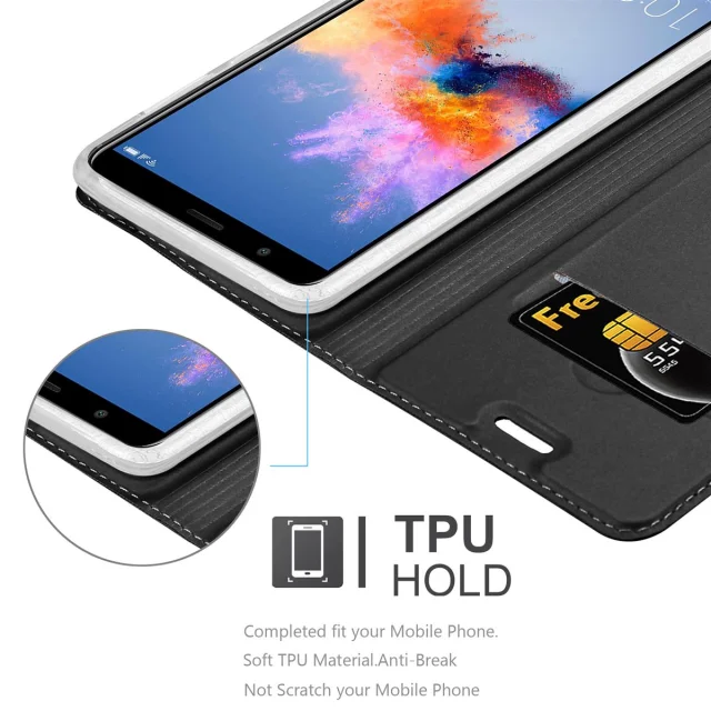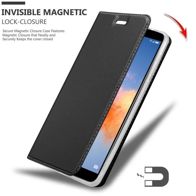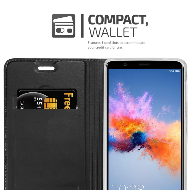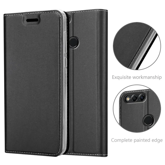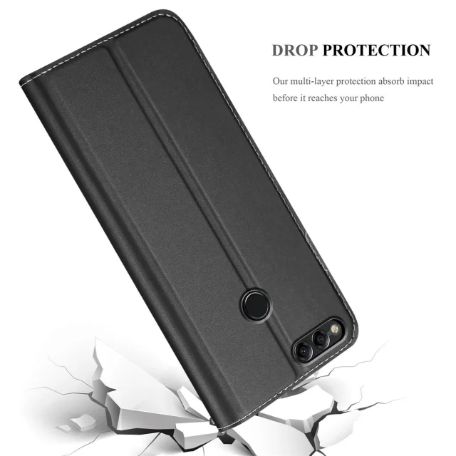 Cadorabo Ohišje, združljivo z Honor 7X v klasična črna - Zaščitni ovitek z magnetnim zapiranjem, stoječo funkcijo in režo za kartice
