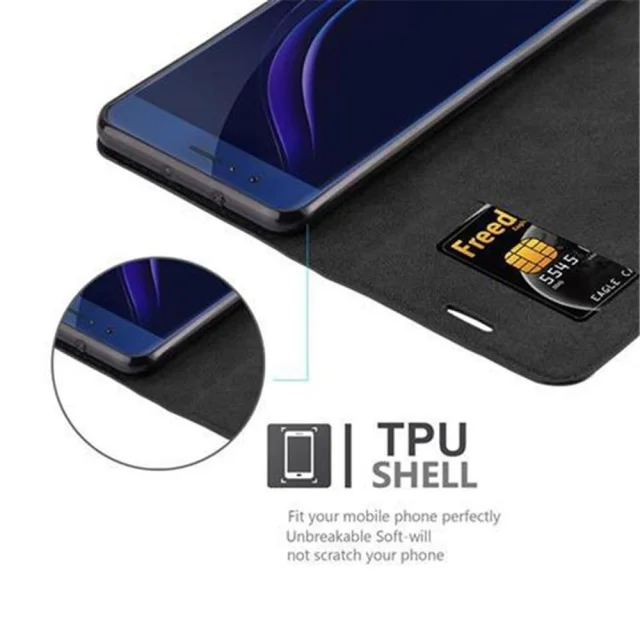 Cadorabo Ohišje, združljivo z Honor 8 / 8 PREMIUM v nočna črna - Zaščitni ovitek z magnetnim zapiranjem, stoječo funkcijo in režo za kartice