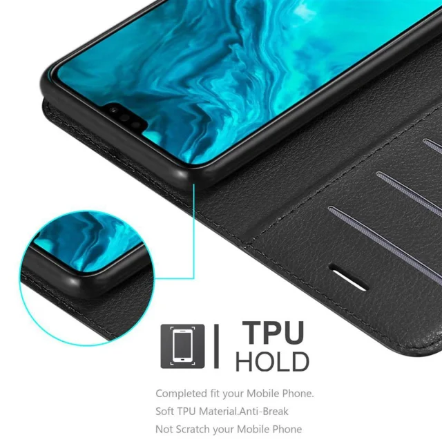 Cadorabo Ohišje, združljivo z Honor 9X LITE v oksidna črna - Zaščitni ovitek z magnetnim zapiranjem, stoječo funkcijo in režo za kartice
