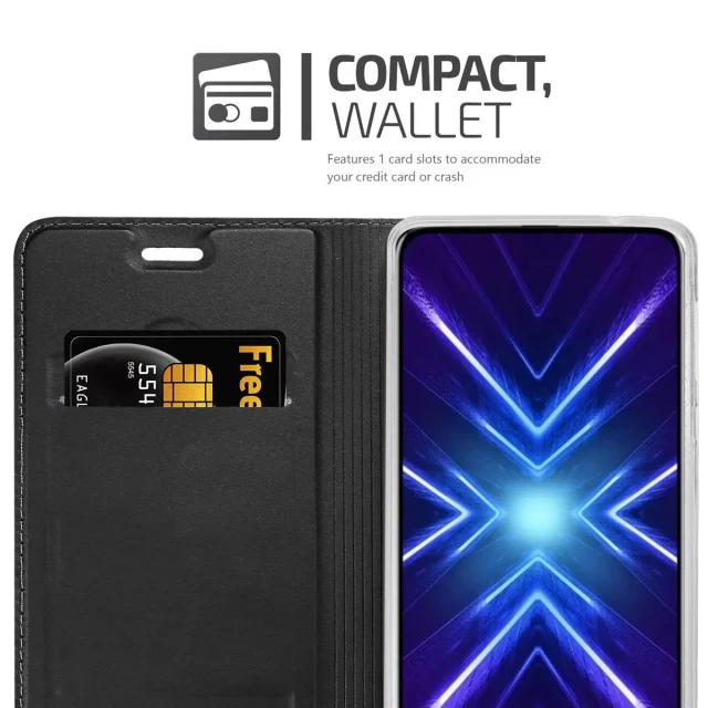 Cadorabo Ohišje, združljivo z Honor 9X v klasična črna - Zaščitni ovitek z magnetnim zapiranjem, stoječo funkcijo in režo za kartice