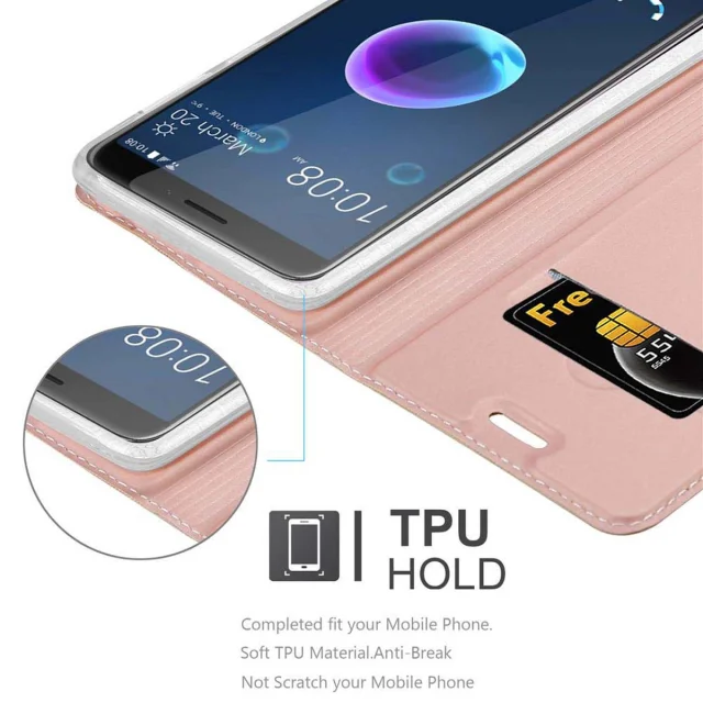Cadorabo Ohišje, združljivo z HTC Desire 12 v klasična rožnata zlata - Zaščitni ovitek z magnetnim zapiranjem, stoječo funkcijo in režo za kartice