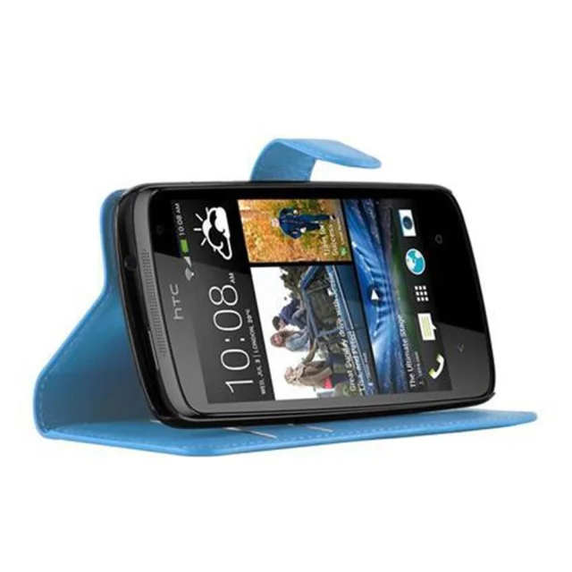 Cadorabo Ohišje, združljivo z HTC Desire 500 v nebesno modra - Zaščitni ovitek z magnetnim zapiranjem, stoječo funkcijo in režo za kartice