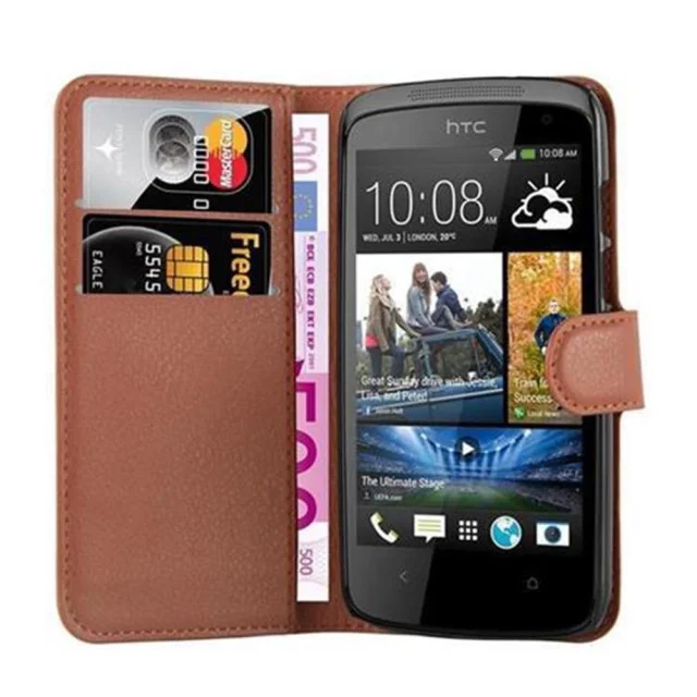 Cadorabo Ohišje, združljivo z HTC Desire 500 v sedlo rjave barve - Zaščitni ovitek z magnetnim zapiranjem, stoječo funkcijo in režo za kartice