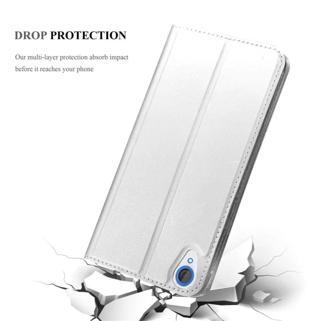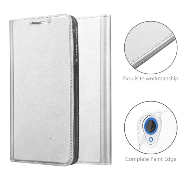 Cadorabo Ohišje, združljivo z HTC Desire 820 v klasično srebrno - Zaščitni ovitek z magnetnim zapiranjem, stoječo funkcijo in režo za kartice